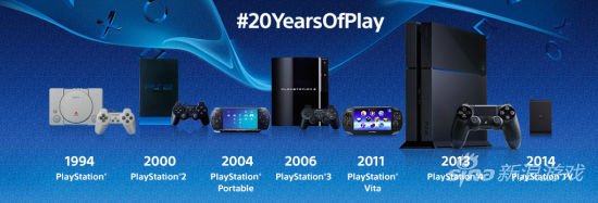1994年12月3日PlayStation在日本首卖,其后20年共发布6款主机。在2014年12月3日已经迎来其20岁生日。PlayStation是首部累计销售破亿台的电视游戏主机。