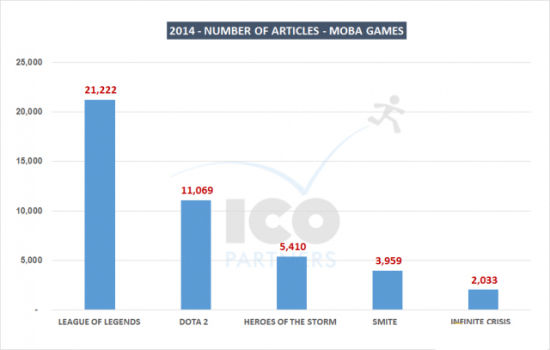 至于MOBA类游戏,《英雄联盟》第一,其出现的次数是最大竞争对手《DotA2》的四倍。