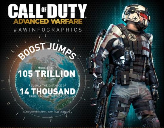 说起来也奇怪,不知道是什么时候开始游戏制作商们都愿意通过收集游戏中的信息来彰显一款游戏的受欢迎程度。Sledgehammer也在不久前为我们放出了一组有关《使命召唤11:高级战争》的数据统计。