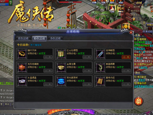 高公公在《魔侠传》中有着两面待遇,虽然他横征暴敛引起了NPC们强烈的不满,但对玩家来说他却是一个出手大方的“怪人”。由高公公发布的皇榜任务不仅是玩家等级升高之后重要的经验来源,奖励也非常丰厚。“断裂的斧柄、蜘蛛丝、泛黄的册子、折断的铁枪”等等适合更适合出现在废品回收站的东西,却是高公公钟爱的“收藏品”,打怪时候随手捡一捡,就可以跟高公公换经验换修为丹换古董,三千文的战利品也许转眼变身价值八十万的古董精品,一本万利不过如此。