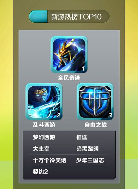 商业化后的游戏都将进入网游热榜,按照热度值全自动计算排列。