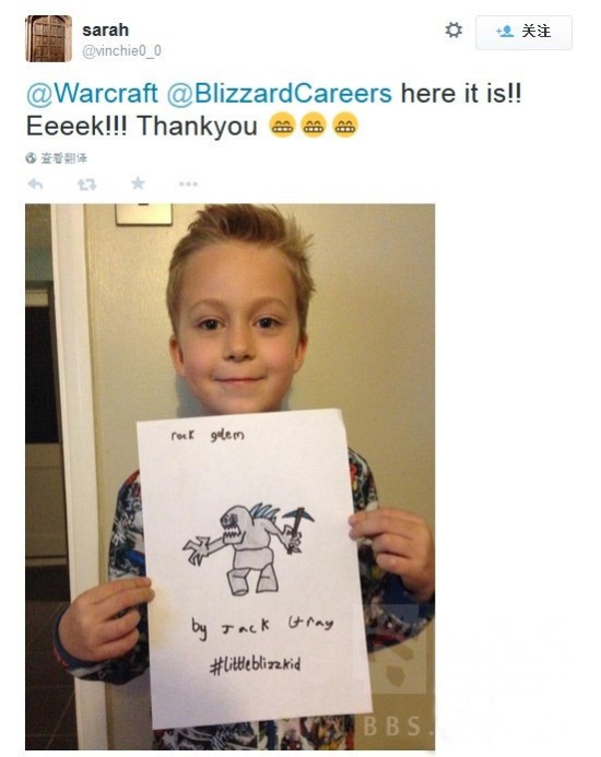 前日,一位母亲sarah在推上告诉暴雪,她7岁的小儿子想要为暴雪工作~在得到暴雪的赞扬和肯定后,这个小正太为暴雪设计了他的第1个作品,一个岩石巨人。