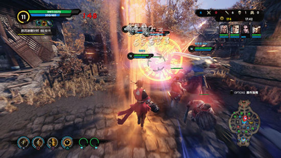 机枪扫射般的快感雷火的弱势与其他高攻击的远程武者一样,具有低防御低血量的共同特点,也没有位移与定身或脱困技能,保命手段太差,所以应避免落单或被近身。好在雷火儿的远射程使得他能够躲在队友身后尽情的发挥,在敌方武者试图靠近时进行烟雾弹减速,再依靠招式1和大招力斩来者。同时还能在敌方箭塔的射程之外推塔,不受攻击;也能借助我方箭塔做掩护,在后方杀敌。拥有队友保护的雷火儿在团战之时能够大显身手,不但能够自己收到许多人头,还能为队友提供杀残血的机会,合作愉快。