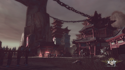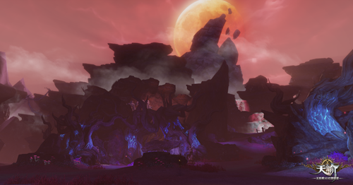 蠢蠢欲动的蜘蛛女王,勾结各路妖魔妄图突破封印,玩家们需要协助NPC守护法阵,阻止女王逃脱。由于蜘蛛女王在此盘踞已久,副本整个色调偏向灰暗,场景中随处可见枯木败草,而玩家背后就是皇帝法阵的阵眼——荒文玄刻,颓败的环境凸显了副本的紧张感,而场景中还有多种道具可以互动,协助玩家保卫法阵。