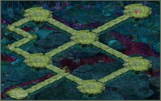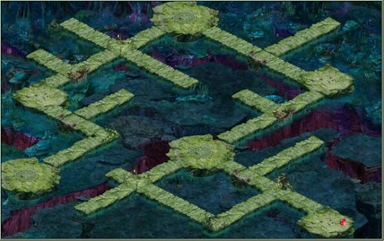 密道一层地图密道二层是修罗古城的中枢所在,也就是迷宫陷阵的关键。玩家进入到密道二层后会自动获得一个绘制地图的任务,玩家需根据任务栏提示前往地图卷轴上标注的坐标点绘制地图,二层共有五个平台上有绘制点,需要通过各平台上的传送阵前往各绘制点。