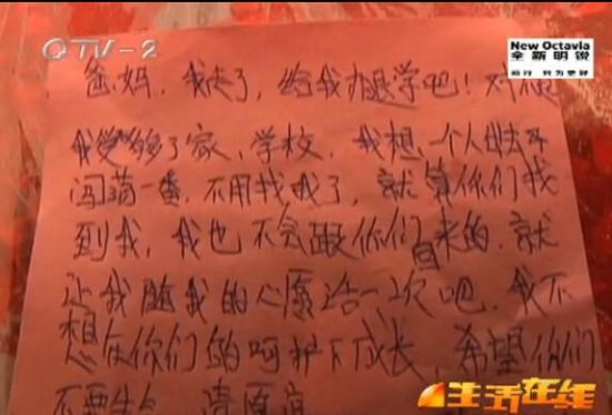 没有交流,没有解释,留下只言片语,14岁的隋亚妮离开了家,从此就再没有消息。而对于女儿的离开,为人父母的至今也想不明白。