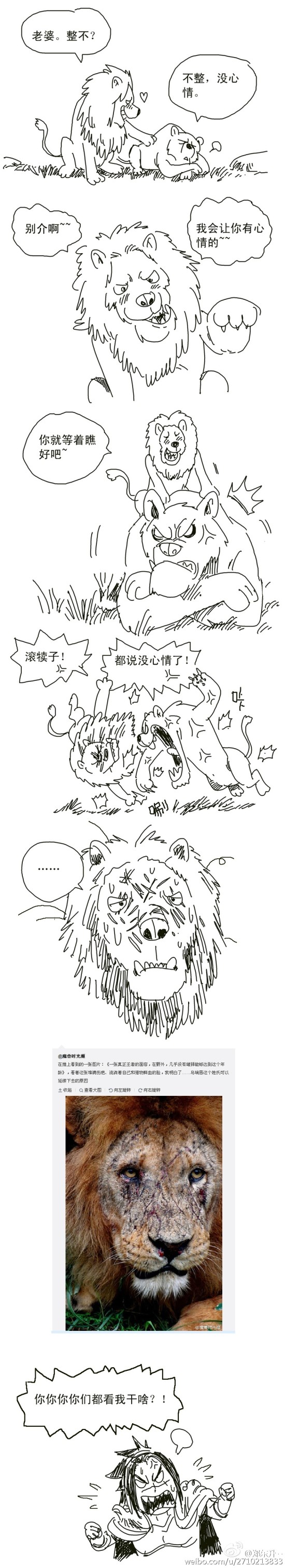 在微博看到了一组对比图,第一张是:《一张真正王者的面容,在野外,几乎没有雄狮能够达到这个年龄》