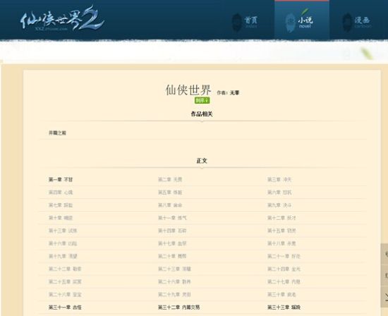 以《仙侠世界2》为背景,由网络超高人气作家无罪所撰写的原创小说《仙侠世界》已于2014年12月18日正式在纵横中文网独家全国首发。现在喜欢无罪小说的粉丝们、或是想要率先了解《仙侠世界2》的玩家们,可以通过阅读原创小说《仙侠世界》来了解游戏《仙侠世界2》宏伟而壮阔的世界观了。该小说除了在纵横中文网连载发布外,游戏的官网上也会进行连载更新,玩家可以直接在官网上免费追看小说哦。