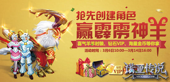 微消费网游领航力作《诺亚传说》3月14日开启两组新服,抢先创建角色赢最新羊年坐骑、时装;新服尊享五重礼,更有新服独享礼包;兄弟齐聚诺亚,领福利战狼王;传说之门,再掀全民PK打宝热潮;新等级、新地图、新职业,一起迈进更激情更精彩的2015!