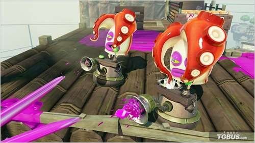 《喷射战士》是任天堂于2014年E3期间公开的一款WiiU平台新作,是一款以颜料和涂鸦为主题的多人在线射击对抗作品,游戏预计于2015年5月发售。日前官方推特也按照惯例继续更新了游戏截图,本次则为大家展示了新敌人“バイタコトルーパー”,下面就请玩家们一起来看一看。