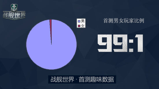 虽然不忍,但事实依然不忍直视。《战舰世界》中99%玩家为男性玩家,只有1%女性玩家。