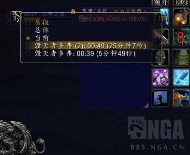 上图所显示的击杀时间有误,为DBM显示BUG,实际击杀时间只有25分07秒,如下图Skada所统计。