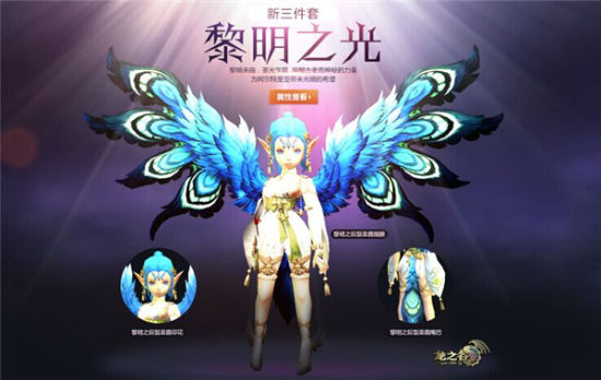 《龙之谷》还将在新版本中推出黎明之巨型圣扇三件套,华丽的羽毛翅膀带来的震撼绝对让人过目难忘。华丽羽毛与孔雀尾巴的完美结合让这组三件套搭配得相得益彰,而蓝色的造型又透露着丝丝神秘的忧郁,冰山美人的高贵让人过目不忘。