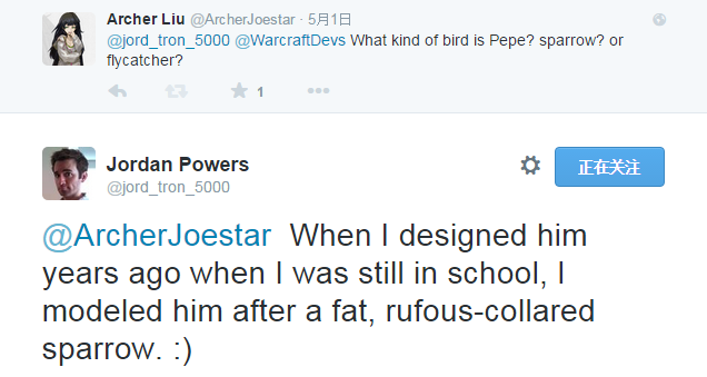 A:当几年前我还在学校里设计佩佩的时候,我是以一只胖胖的红领带鹀为蓝本的。:)(译者注:红领带鹀:[//baike.baidu.com/view/4746060.htm])