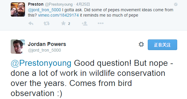 A:问的好!不过并不是 - 这几年我在野生动物保护方面做了很多工作,佩佩的动作来自我对鸟类的观察。:)