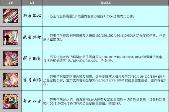 不要盯着我的腿看苏玉竹的天赋能够提升周身范围内武者的内外功伤害,效果不大,凝聚力不够;招式1适合与武者对战,扇形伤害且有晕眩效果;招式2为护盾能吸收伤害并可提速,是追击与保命合一的神技;招式3的剑阵具有群体伤害并能群体回复,且能远距离投掷,为苏玉竹的核心招式;招式4在团战时能够发挥巨大效用,关键时刻可以转危为安,扭转败局。