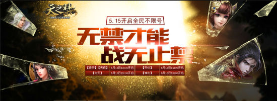 百万红包2015年最受期待网游《天之禁》,5月15日不限号测试震撼开启。全新世界,全新玩法,《天之禁》带你感受千年前的史诗之战,不战不江湖!更多信息请关注《天之禁》官方网站>>>