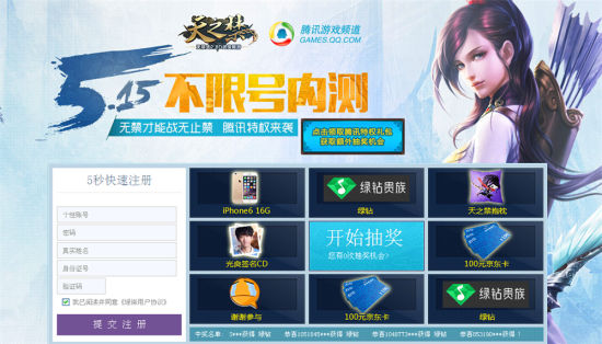 三十万话费大放送为了丰富玩家游戏之外的生活,《天之禁》携手多家媒体送福利。首次不限号测试当天登陆不限号一区,并在规定时间内达到40级,即可获得迅雷白金会员。领取腾讯专属礼包,即可获得多种游戏道具及永久QQ企鹅仙灵,还可获得抽奖机会。QQ绿钻、定制周边、京东百元卡、光良签名CD及IPhone 6等多重好礼送不停。即日起,在于天之禁百度贴吧发布的贴中选取优秀帖若干,对这些帖子的发布账号,给予一个月贴吧超级会员奖励。