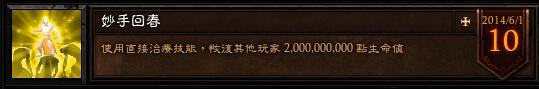 妙手回春是最变态的职业成就之一(另外一个是DH 10万恶魔),需要通过治疗技能为其他玩家恢复20亿生命值。
