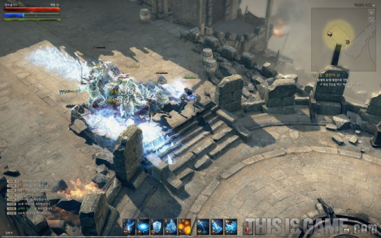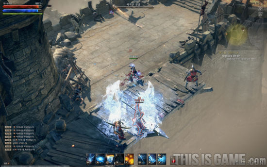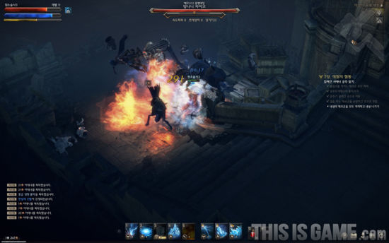 这个是亮点!每个职业都有鼠标右键滑动的特别操作,有一定的CD。技能会随着你滑动轨迹进行攻击,而且所见即所得。虽然看上去很简单,但是实际上操作上手却要一定的时间,有的技能只能用鼠标画直线,如果你画成圆圈,鼠标轨迹就会变成红色,代表无法释放技能。其他的技能释放和设定和暗黑3比较类似,但是法师的特效更为华丽,技能识别度没有暗黑3那么高,感觉就是其他韩国游戏里都有的技能,不过很可能是因为这些技能都是新手技能,没有体验到后期技能的缘故。