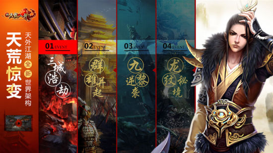上半年的“狂战天下”资料片中,研发团队将与玩家相伴了三年的“天外江湖”体系彻底推翻重做,不仅底层的PVP、PVE玩法全面换新,连天外全部场景也面目全非,可谓新天龙史上第一次“大灾变”式游戏更新。罗浮、钧天和潮京三大主城化为一片汪洋,世族消亡,世族城市和世族联盟不复存在,众多旧玩法成为历史,九黎奇袭、八皇争鼎、问鼎天下三阶荣耀战场等新玩法取而代之,重塑了天外整个生态格局。