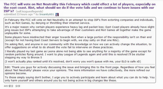 这是某些选手遭受严重延迟以及丢包的原因,在东海岸玩家们已经遭受了轻微的跳ping现象,而ISP却一直试图从拳头以及广大玩家身上捞油水。有些玩家错误地将这种愤怒发泄至拳头身上,认为其应该承担很大责任(当然东海岸服务器还未开服确实有责任)。