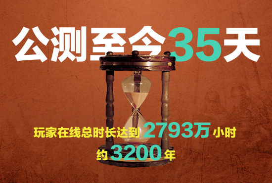 37《传奇霸业》里人山人海的场面相信只要进入这款游戏的玩家就能亲身感受。然而,比人数更让人震撼,也更能体现一代“传奇人”热情的,则是他们的在线时长。据统计,这款游戏公测35天以来,玩家在线总时长已经达到2793万个小时,如果你对这么大的数字没有确切的概念,那么我们把它的计时单位换算成年,37《传奇霸业》公测35天玩家在线时长总和约为3200年!