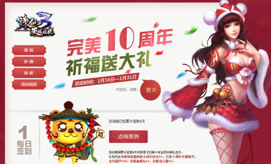 完美十周年 祈福赢大奖新年祈福赢大奖,你有对“诛仙”或是“完美”想说的话,在这里可以尽情畅所欲言。每日完成一次祈福后,就有一次抽取大奖的机会。无论是游戏内的10铁,还是公仔、鼠标等实物奖励,应有尽有!