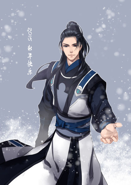 玩家原创同人@毛糰小劍劍 携御剑给大家送上新年祝福。雪中的御剑小哥,英姿飒爽,有没有让你心动呢?