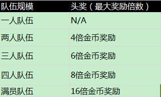以下表格显示了“队伍奖励”的最大倍数细节: