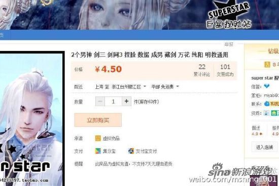 但是有一些无良商家,拿了数据之后,到淘宝出售,没有经过原作者的同意,并且还大放厥词,我想请问下,小伙伴们自己捏出来的脸型就得不到保护了吗?对于这种恶意窃取他人数据牟利的行为就没人管吗?商家表示这个版权只有剑三有,想问下官方是否能保证小伙伴们辛苦捏出来的结晶,而不是被无良商家无耻盗用?”