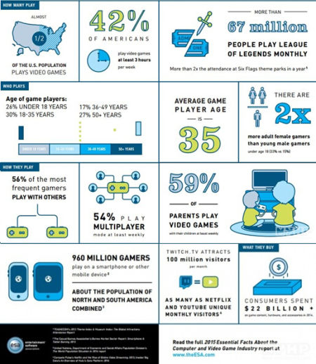 Nielsen研究报告指出,玩家购买不同的主机都有特殊的理由,比如说购买PS4的玩家是为了更好的画质,购买Xbox One是因为品牌影响力和忠诚度,买Wii U则是看中其乐趣性。那么主机玩家选择游戏的首要标准是什么呢?ESA的最新2015 Essential Facts(基本事实报告)解读了这个产业问题和趋势。