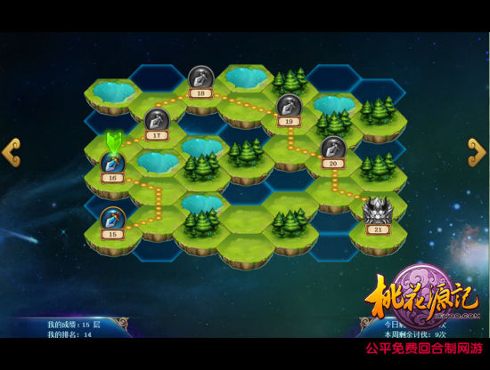 《桃花源记》“幻象远征”为闯关游戏,只能逐关通过全部119关,且难度逐关增加,每打通7小关便会遇到一个BOSS关卡。