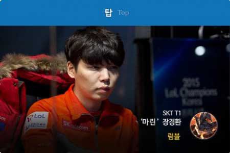 在大换血的OGN联赛里Marin作为一个资质不浅的职业选手在本赛季发挥极其出色已经封王!Marin在GANK上有着对上单独特的理解,经常能够在合适的时间出现在合适的位置,完美的传送更是帮助队友强势建立 起线上的优势。可以说,Marin是Skt T1全队的连接枢纽。