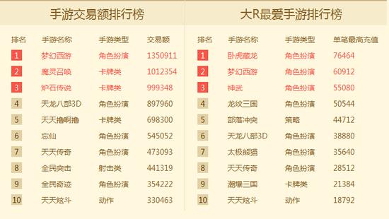 手游交易排行榜上,《天天炫斗》挤掉上周表现不错的新游《魔剑之刃》, 强势登上双榜,在这个时间节点上能获得这样的成绩,大部分原因可能要归功于五一期间,运营活动效果不错,而其他位置上的排名,较上周并没有太大的变动。