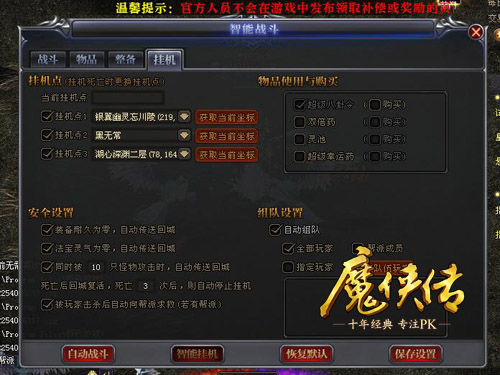一般网络游戏玩到后期,往往都会面临升级越来越慢、任务越来越难的困境,漫长的经验槽和缓慢的增长速度让人疲惫不堪。如果说这是大自然的规律无法避免,那么至少应该让升级过程变得更加轻松愉悦一点。《魔侠传》中特有的逆天神器——智能挂机系统让玩家只要“爽”不要“磨”,升级刷怪一劳永逸,坐享美好成果。在《魔侠传》中玩游戏走不走心并不重要,开心才是王道。