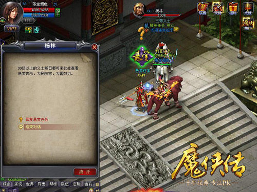 领双大使很亲切悬赏任务是中后期侠米们的升级好帮手,根据品质不同奖励等级也不同,玩家可以使用游戏过程中得到的道具“悬赏令”和“超级悬赏令”进行刷新,保证自己的收益最大化。通常悬赏任务会指定击杀一定数量的某种怪物,而同等级的试炼宝鉴则需要击杀同样数量的野外怪物即可,两者完全可以重叠进行,达到事半功倍的效果,不过悬赏任务一天只能接一次,试炼宝鉴则可以使用五次,侠米们在做其他野外任务时也可以同时接取试炼任务。