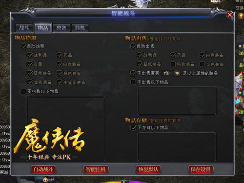 即使在没有任务的时候,智能系统也可以继续为玩家挂机升级赚钱。《魔侠传》中怪物的产出特别高,而且有别于其他游戏的“垃圾”道具,这些产出非常值钱,各种白板装备和战利品直接丢商店都有几千甚至几万的收入,是不是特别心动呢?忙碌的时候就让智能系统来帮你挂机赚金吧,担心挂机时间太长红蓝耗尽惨死怪群吗?自动补充药品道具功能让你安全无忧;担心包裹太满错失高品质装备吗?自动存储出售功能帮你自动管理背包仓库,永远保持整洁有序,面对这样给力的智能系统,你还犹豫什么?