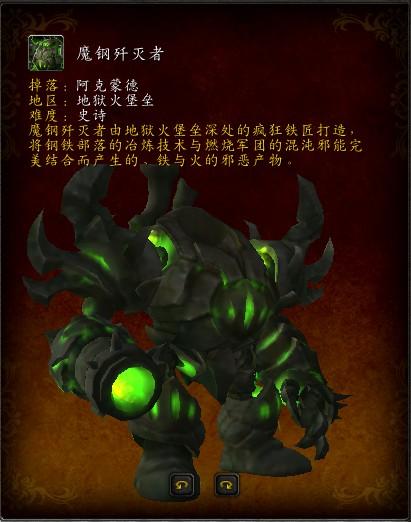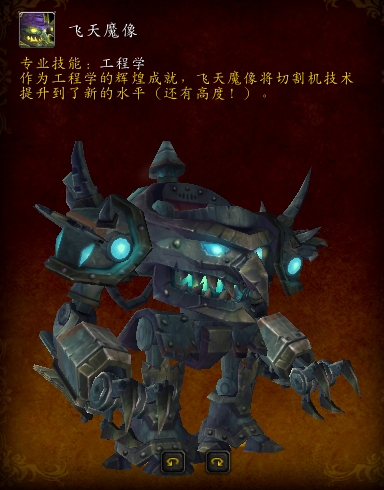 但是这个坐骑到了6.2以后就不是独一无二了,因为黑索公司加入了古尔丹的军团,并且打造了一只有史诗阿克蒙德才能掉落的邪能飞天魔像。两个坐骑都是同一个模型骨骼来的,连机体震动的频率都一样。