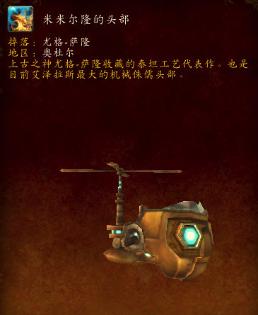 这个坐骑出自奥杜尔,原型米米尔隆发明高科技机械,未被改版。目前看来以后也不会被改版,除非巫妖王再怒、尤格萨隆再复出要么不会改版染色。