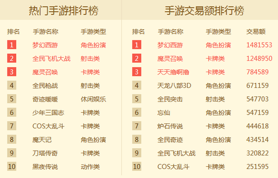 手游交易额排行榜排名相对稳定,《全民飞机大战》理所当然的进入了榜单,只不过双打虽好但并不能刺激交易,所以排名也仅仅在第九位。而随着《炉石传说》热度的下降,交易榜位置也是直线下滑,已经跌至第7位。