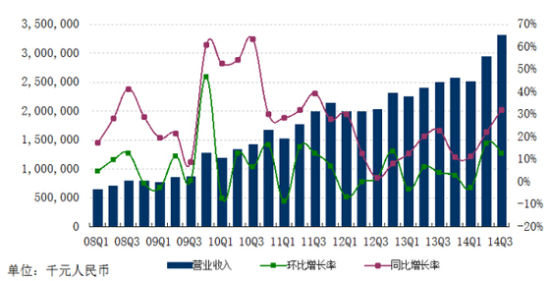 11月13日消息,网易(Nasdaq:NTES)今天宣布了公司截止到2014年9月30日的第三季度未经审计财务业绩。数据显示,网易三季度总收入为33.26亿元人民币(5.42亿美元),同比增长32.3%,三大业务收入均创历史新高;净利润11.59亿元人民币(1.89亿美元),同比增长10.6%。