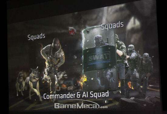 此外,也首次公开了以战略为基础的特殊内容“Squad War”。“Squad War”是玩家和人工智能组队对抗,按照作战指示展开战争的新方式。
