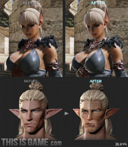 A: 准确的来讲,我们想要给大家展示的画面和大家在游戏中实际看到的还是有一定差距的。但是我们在本次的测试中努力缩小这样的差距。比如加强角色脸部的修饰,将鼻翼和双眼皮制作的更立体。光线效果也有大幅度改善,角色站在灯光下和黑暗中的脸部明暗变化也做了加强。
