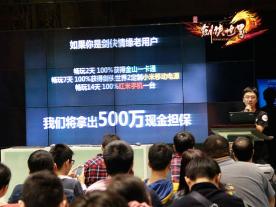 在11月7日的品鉴会上,《剑侠世界2》制作人孙多良不仅为到场品鉴团员揭秘了公测的全新内容,更承诺拿出500万现金担保回馈玩家。此外品鉴会上还有各种趣味的活动和海量的奖励。不仅有玩家自创门派,挑战技能策划胜利赢取定制版Zippo打火机,更有微信摇奖等活动抽取定制版小米电源。