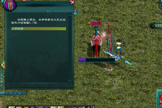比武岛中间有个图腾,占领图腾后,本国国家成员在比武岛经验区内的经验将额外增加1.5倍。为了争夺图腾,有时候也需要一番激烈争斗。战斗号配合杀其他敌国占领图腾的人,而血量较多的玩家可以开无敌再对图腾进行占领。