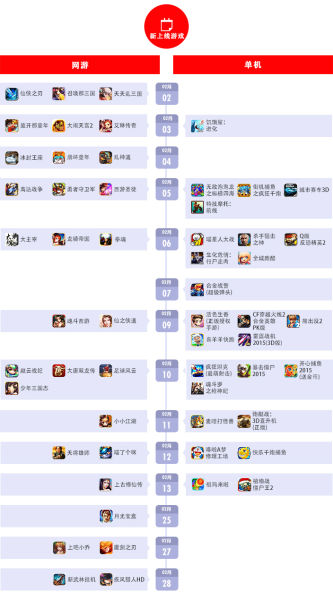 百度移动游戏2月份上线的新游总计有105款,其中报告重点展示的新游56款。受春节长假影响,游戏上线数量较1月有小幅减少。在2月重点展示的新上线的30款网游产品中,有近半数为RPG类型手游;在重点单机游戏方面,则仍以休闲益智类占据主导。