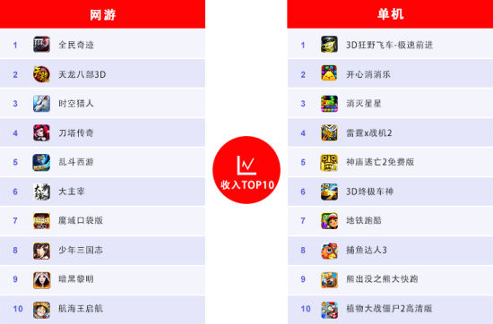 新上线游戏整体游戏收入:《全民奇迹》实现网游收入第一