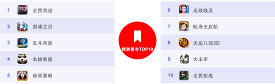 2月份网游留存榜单中,仍以重度和动作类手游为主导。其中,在收入方面表现突出的《全民奇迹》不负众望,再度夺得留存榜第一的好成绩,其次则分别为《乱斗西游》、《太极熊猫》。而上月并不在留存榜TOP10行列的《无敌召唤》、《航海王起航》、《大主宰》、《全民枪战》等几款游戏本月成功“上位”。对于本月刚上线的《大主宰》而言,其一经上线便取得收入第六、留存第九的佳绩,其未来的爆发将尤具想象空间。