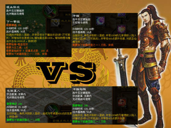 而武圣将这两个技能完美的保留了下来。武圣中的“长驱直入”使角色冲到敌人面前,造成敌方减速50%的效果。“冲锋陷阵”使角色冲到敌人面前,并有100%的几率使敌人陷入定身状态不可抵抗,并带有额外伤害。这两个技能便是“冲锋”和“嗜血狂攻”的化身。